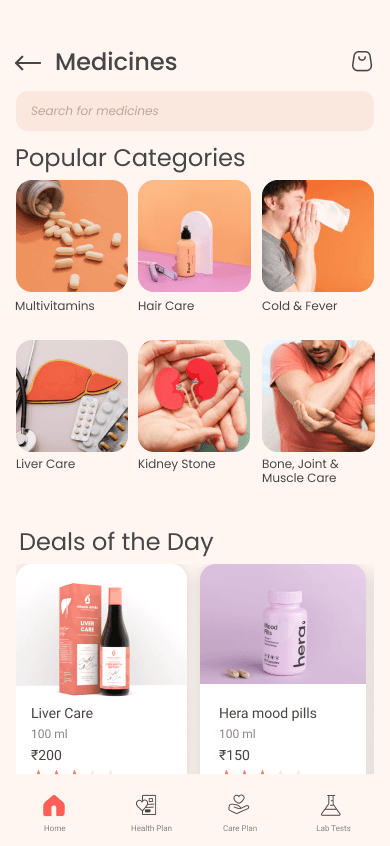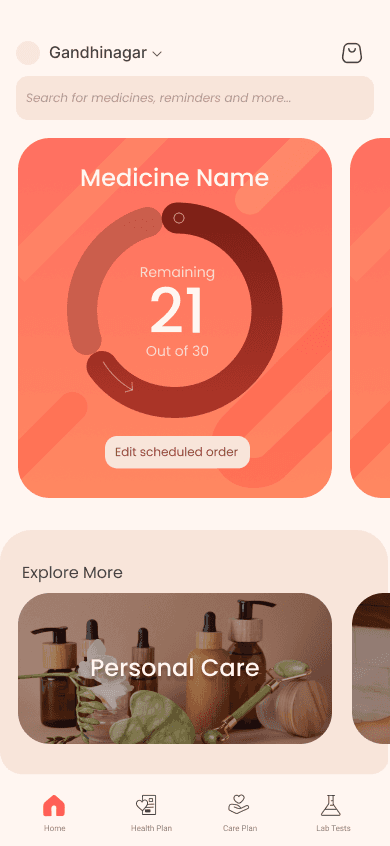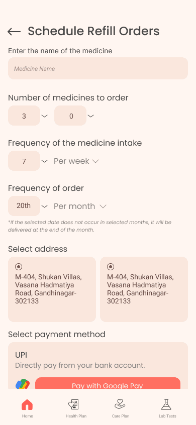 Scheduled Medicine Refill Orders and Medicine Count. This feature enables users to set the quantity for medicine orders, schedule them, choose a payment method, and specify dosage. The app tracks medicine intake and facilitates quick refill orders with just one click.